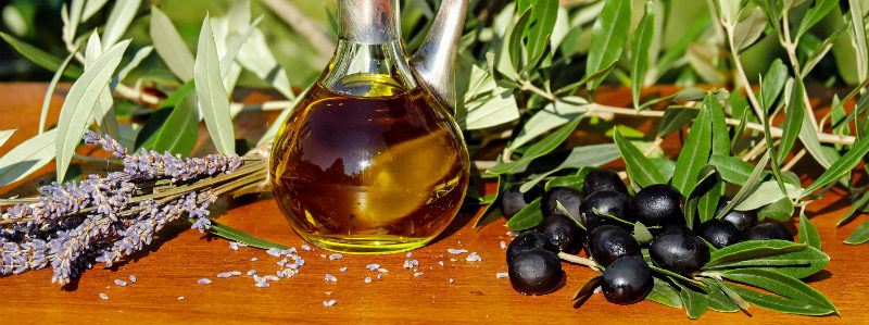 Oil, Lavender & Olives on table of Spartan Treasure website (Kalamon Olives Production & Standardization Company), Table Edible Greek Olives!